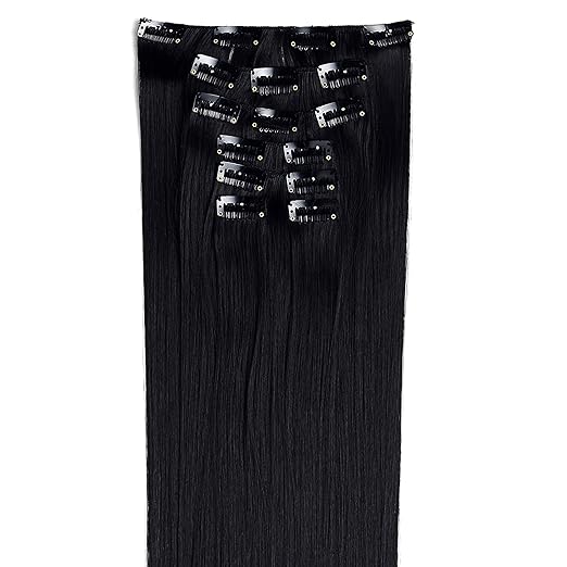 OneDor 24" derecho Clip cabeza completa de extensiones de pelo sintético Lisa.